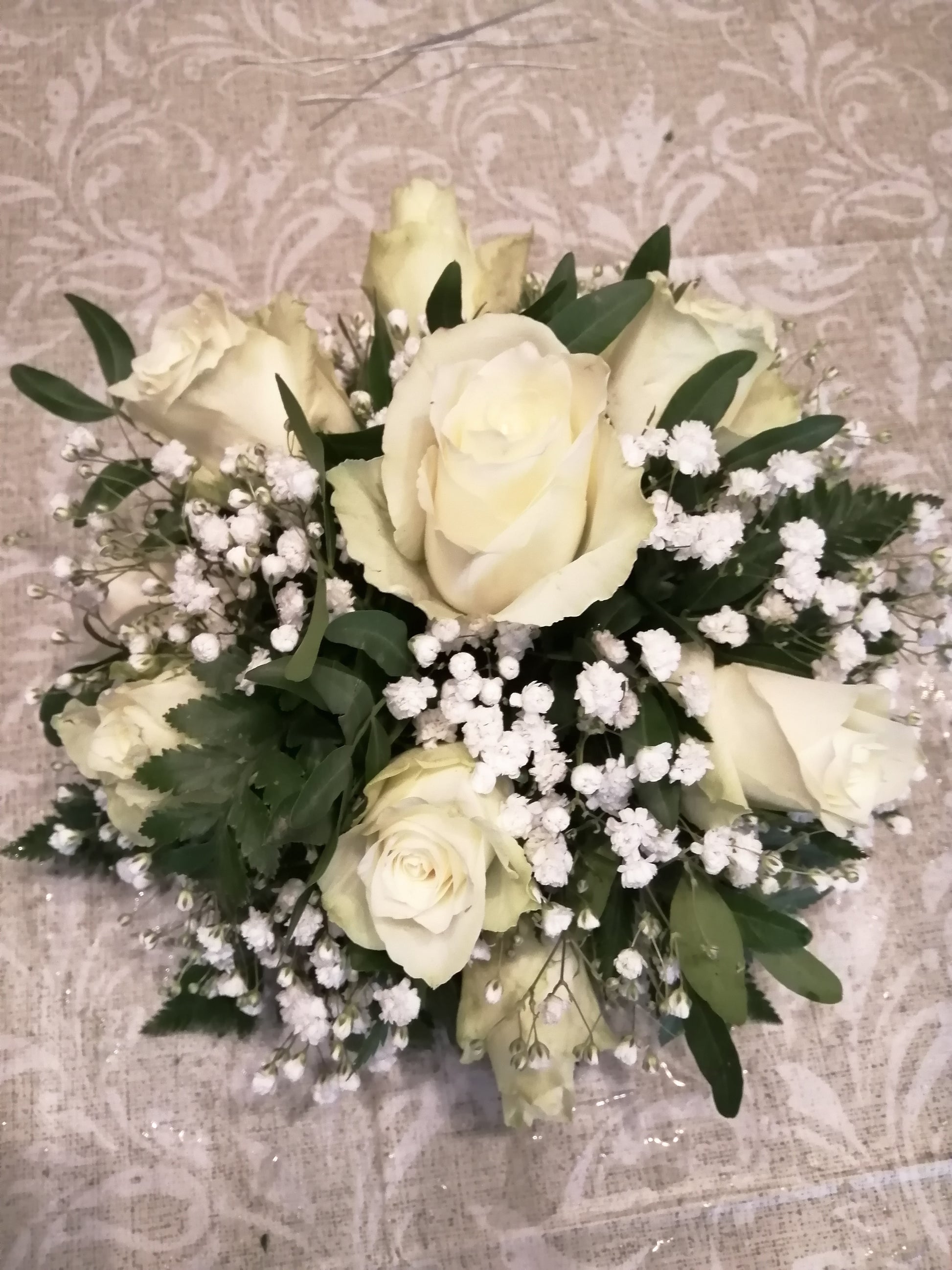 Fehér rózsa rezgővel asztali dísz