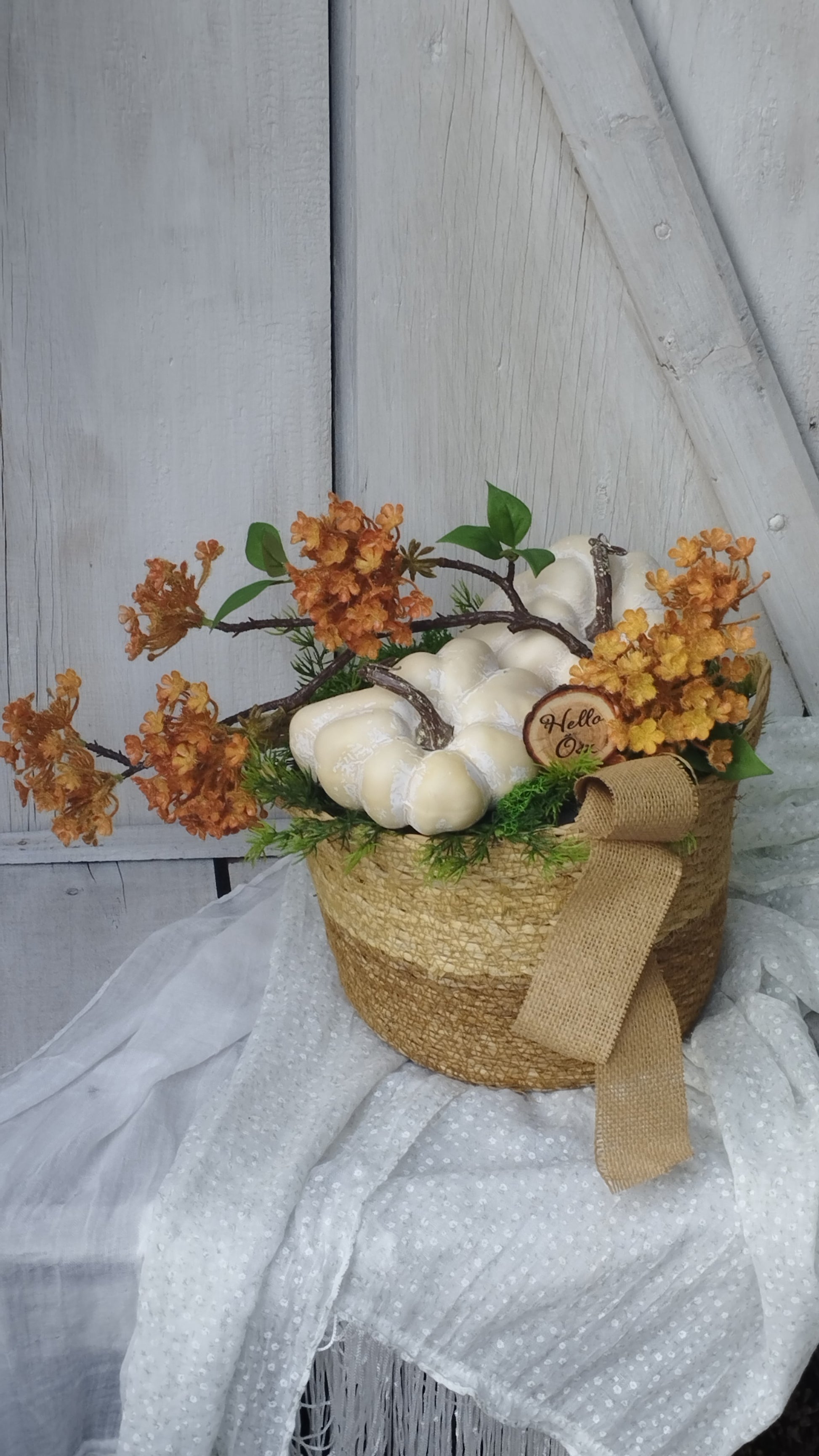 Pasztel tökök narancs színű virágos ággal