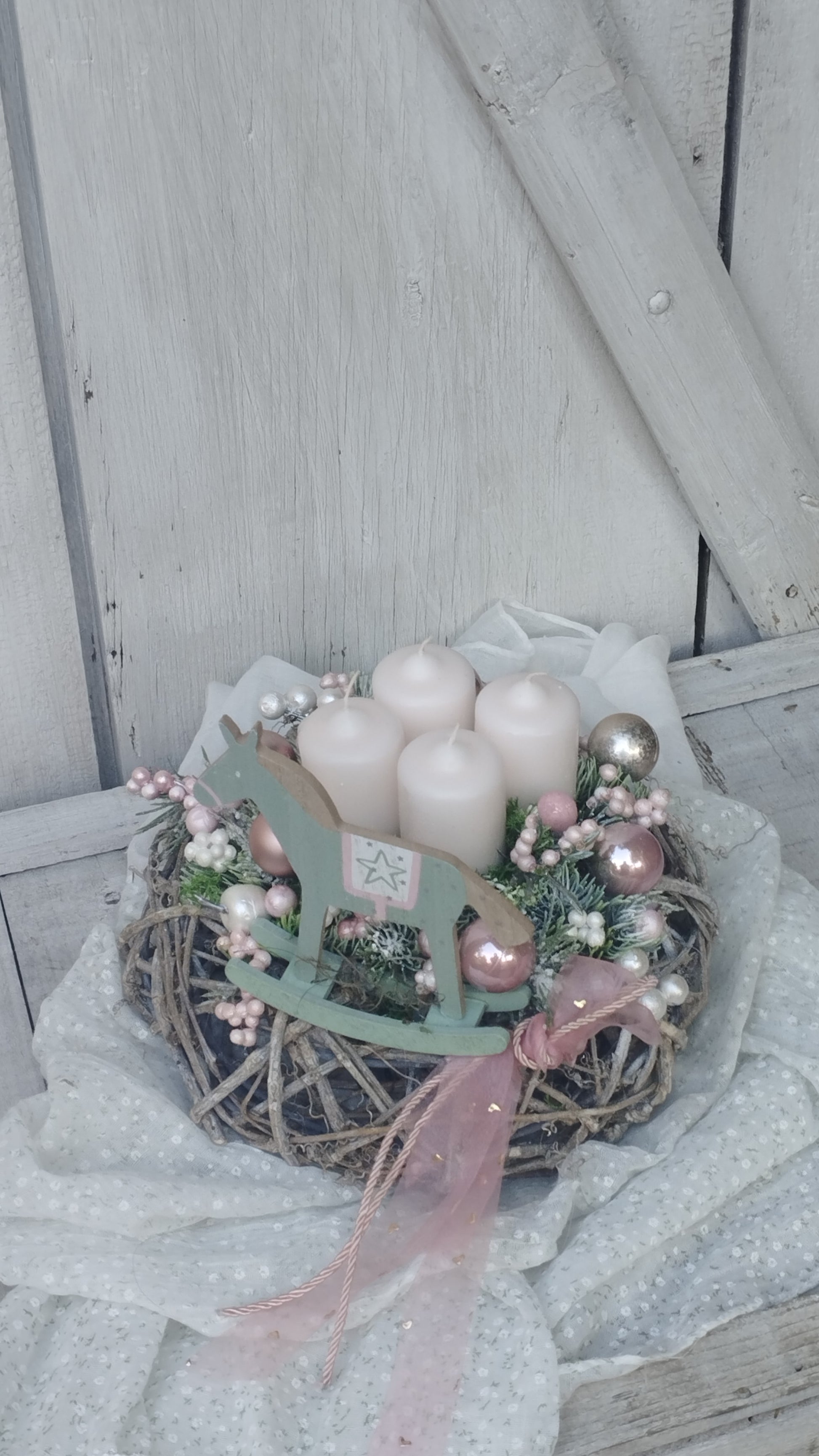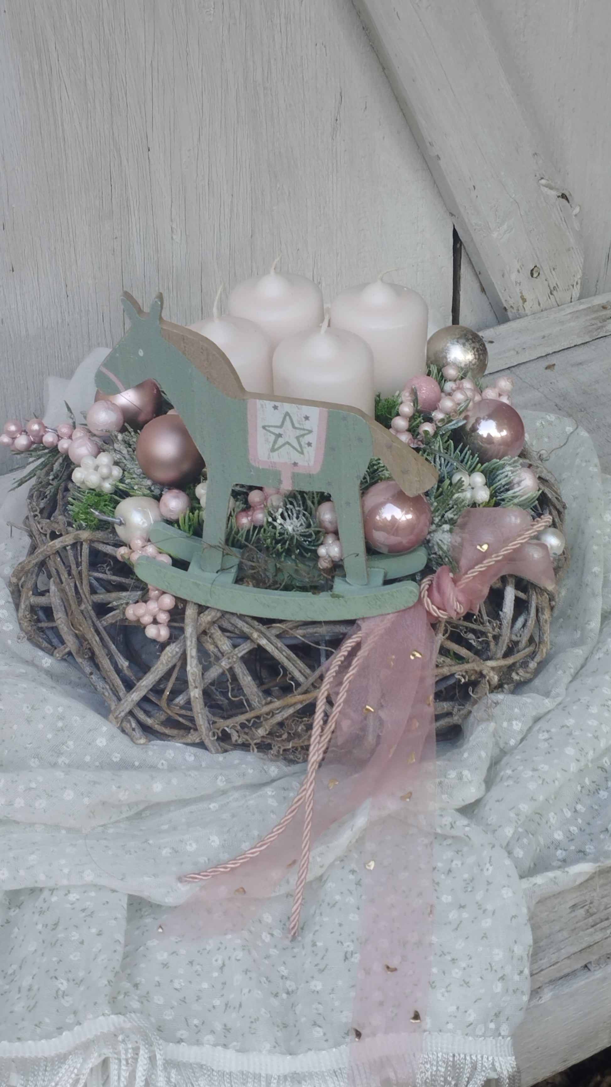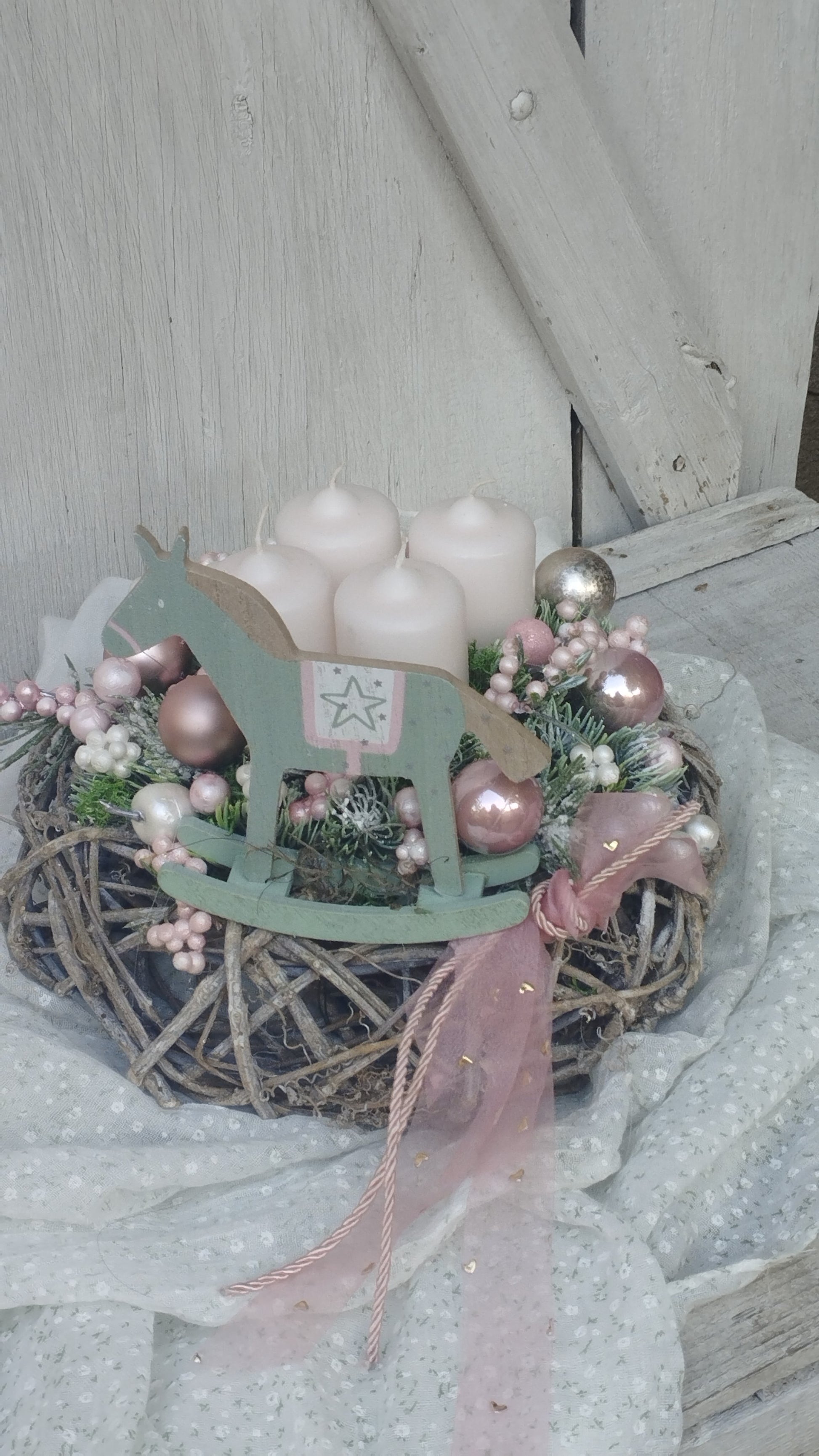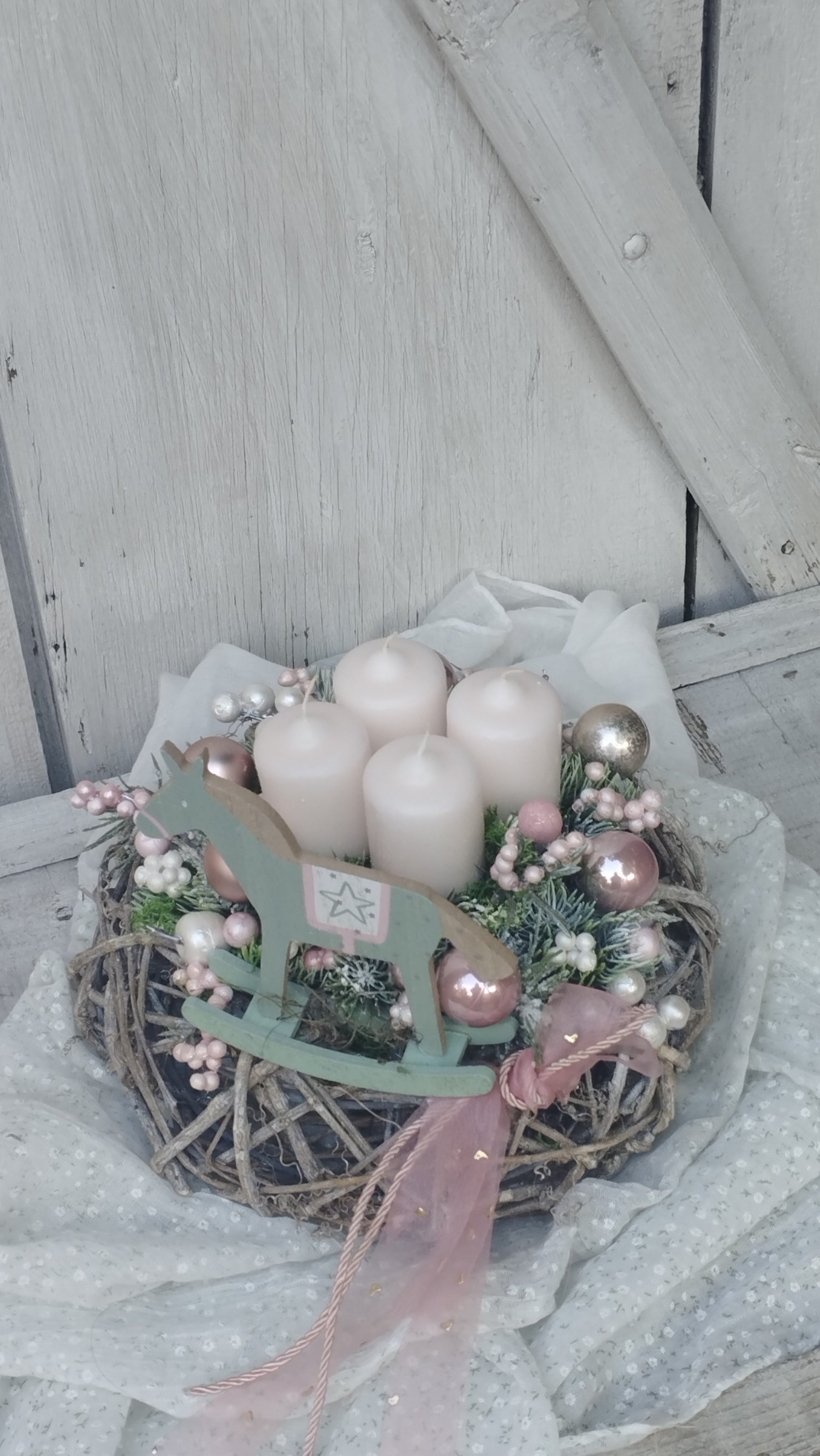 Pasztel zöld fa lovacska púder rózsaszínnel