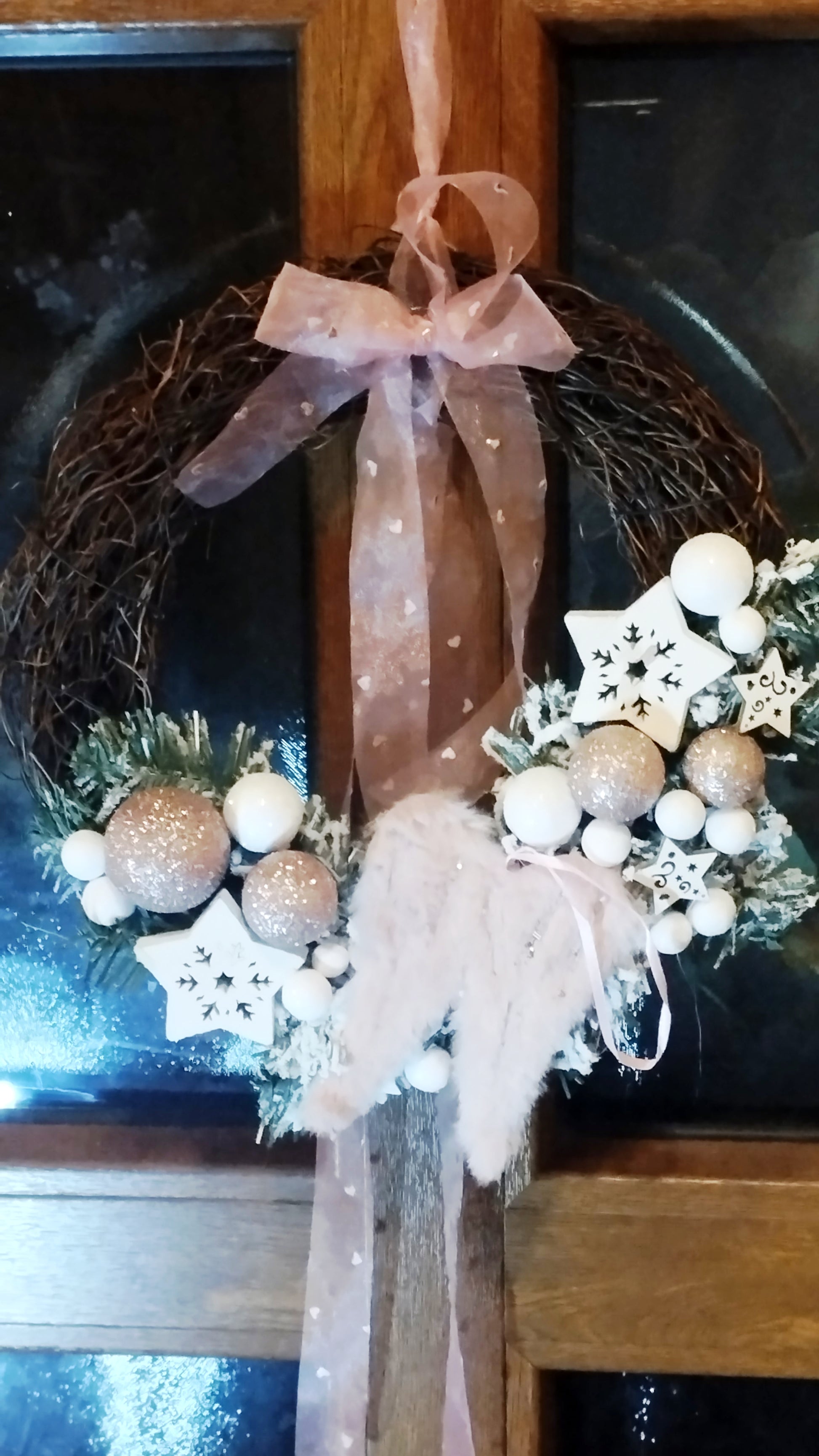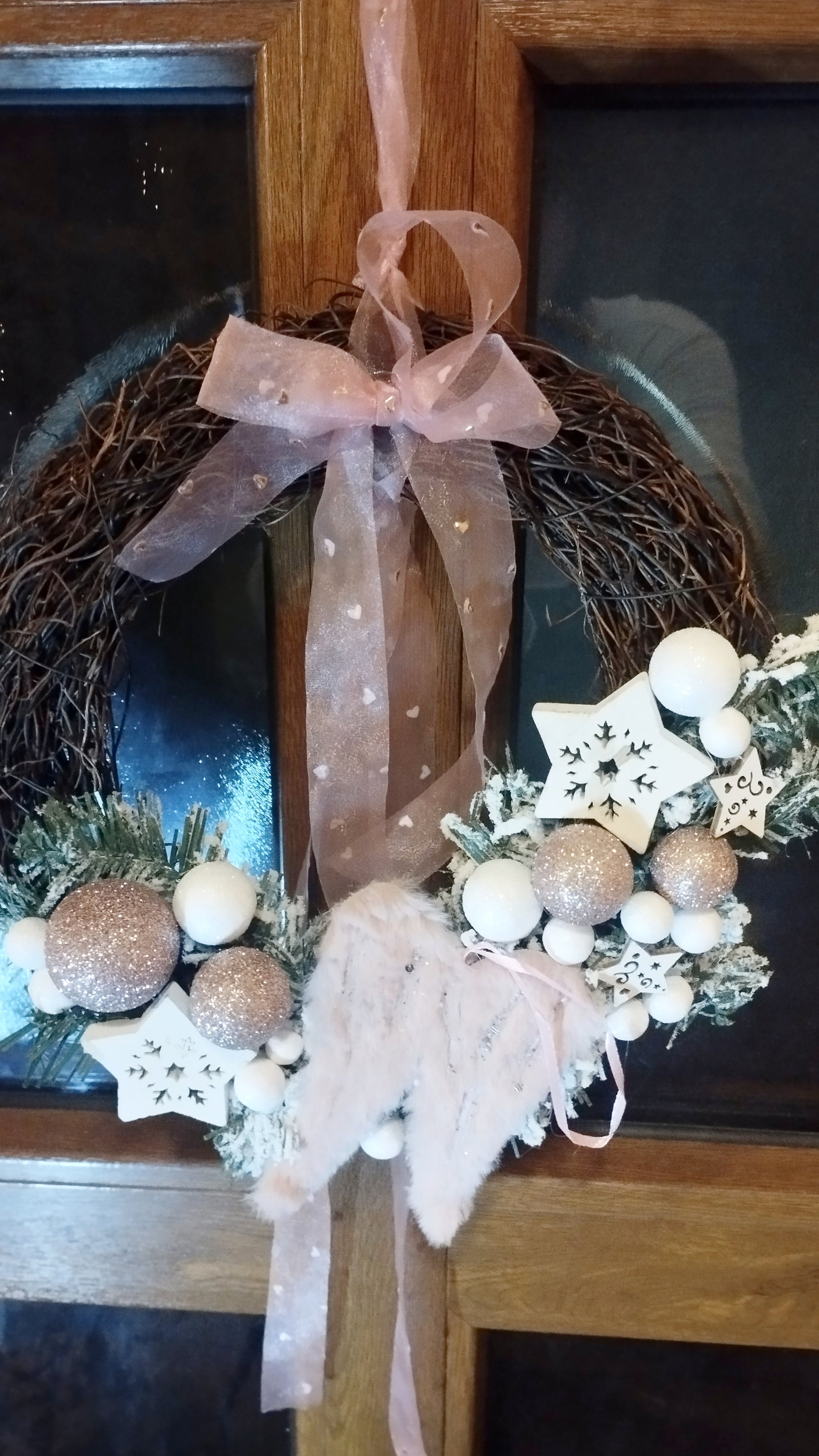 Rózsaszín angyal szárnyas koszorú