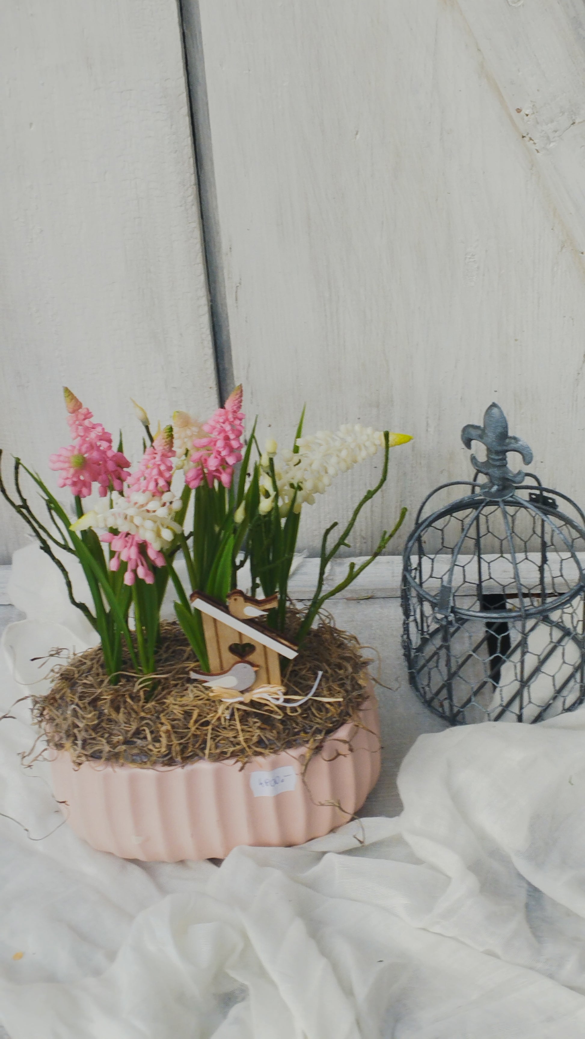 Egyszerű tavaszi asztaldísz , a természetesség jegyében.