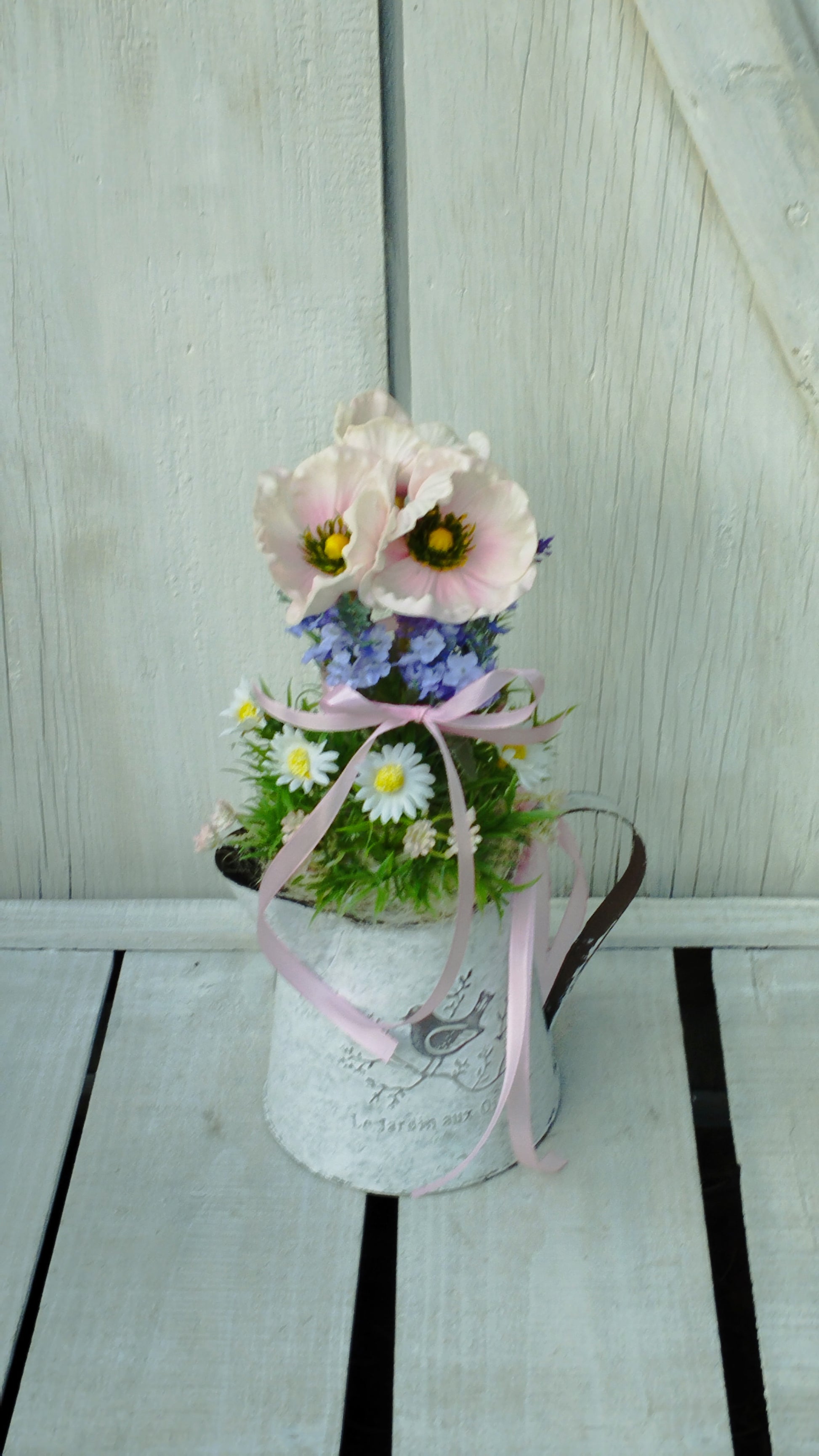 Rózsaszín pipacs bádog edénybe